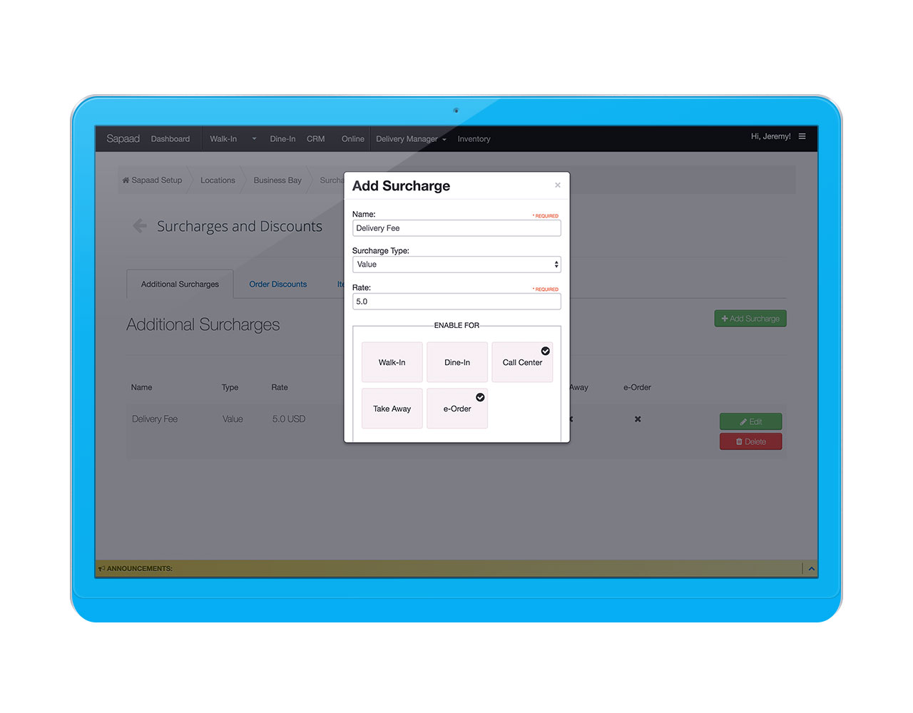 Step 3: Click on Menu Management > Surcharges and Discounts. You'll notice the Additional Surcharges tab is selected by default.